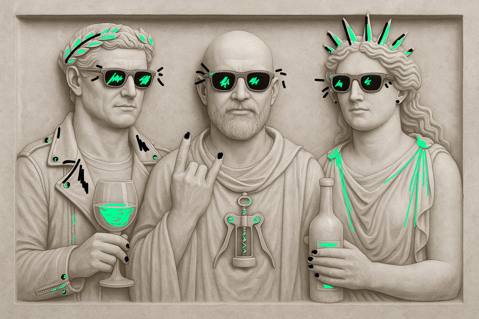 Incluso los nuevos creyentes al culto a Baco son bienvenidos, para regalarles un “WTF divino”.